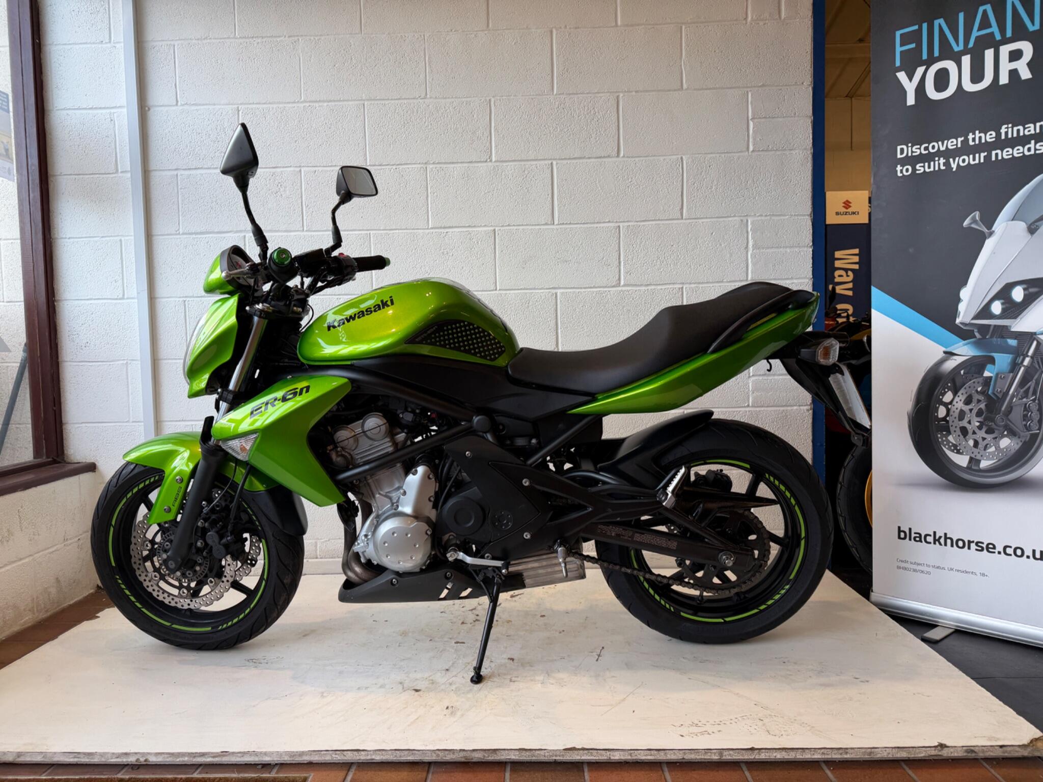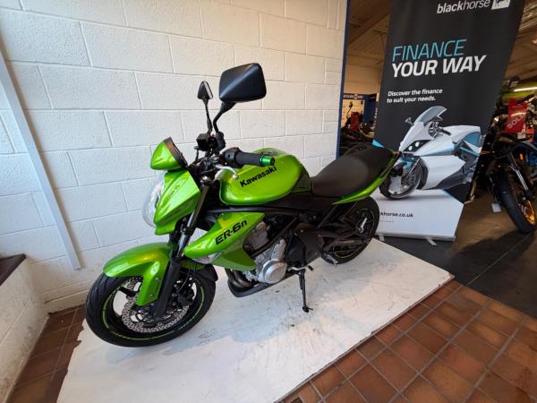 We currently have this Kawasaki ER -6n in metallic green registered 01/05/2009. the bike has four previous owners and has covered 8406* miles and is supported by FDSH with the last recorded service at 5825 mile on 08/02/2025.the bike comes with 2 keys a handbook and service booklet. The bike will leave us with a full PDI check over. If you would like more information or a detailed video, please contact Sales on 01745 815105 or WhatsApp 07496 452561. Finance options are available. *mileage correct at time of advert PX considered . This bike is a credit to its previous owners and is very well presented