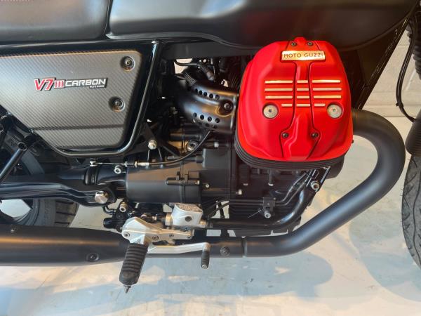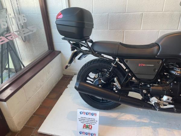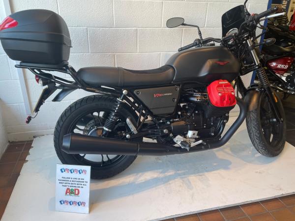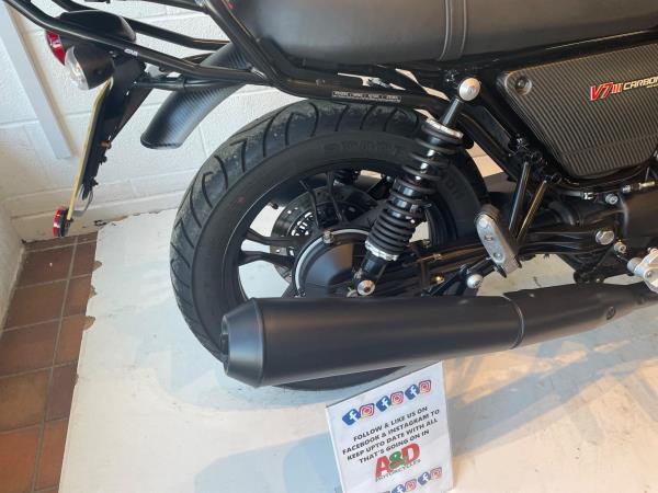 We currently have for sale a Moto Guzzi V7 III Carbon. Registered March 2020 on a 20 plate. The bike has done just 7,101 miles* and has had only 3 previous owners. It is fitted with some nice extras including a screen, rack and top box, USB, plus tank pad. It comes with both keys and a handbook. It also has good service history. The bike will leave us with a full PDI, service and MOT if required. If you would like more information or a detailed video, please contact Sales on 01745 815105 or WhatsApp 07496 452561. *mileage correct at time of advert