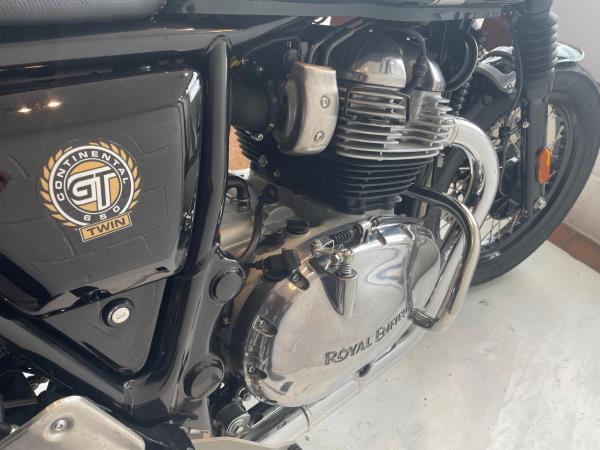 We currently have a Royal Enfield Continental GT for sale. Registered July 2022 on a 22 plate with just 1,775 miles* on the clock. The bike has had two previous owners and is originally from here. It is fitted with some nice accessories including an alarm, screen, rear seat hump and crash bars. It comes with both keys and a handbook. The bike will leave us with full PDI, service and MOT as required . If you would like more information or to discuss purchase and finance options please call our sales team on 01745 815105 or WhatsApp 07496 452561. * mileage correct at time of advertisement.