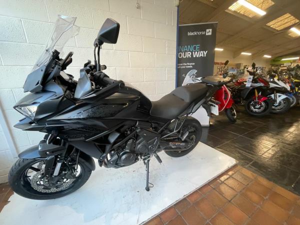 Currently we have this Kawasaki Versys 650 registered 01/03/2023 in black. this two owner bike has covered 2163 *miles which is supported by a FDSH with the last recorded service at 15950 miles on 07/06/2025. This bike has been fitted with the GT kit of top box-side panniers – heated grips-spot lights-touring screen and tank pad. Kawasaki offer a 4 year manufactures warranty , the remainder of the warranty from date of registration will come with this bike. The bike will leave us with full PDI ,service and MOT as required . If you would like more information or to discuss purchase and finance options please call our sales team on 01745 815105. * milage correct at time of advertisement./