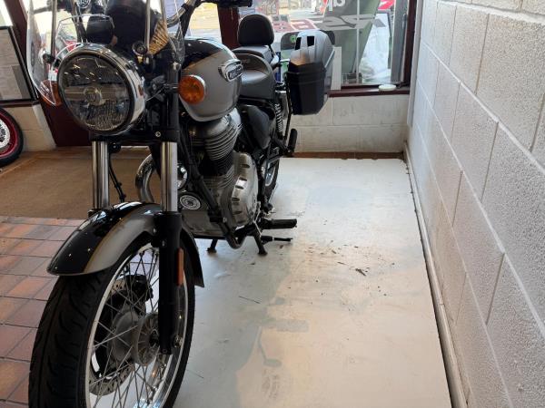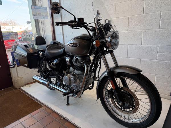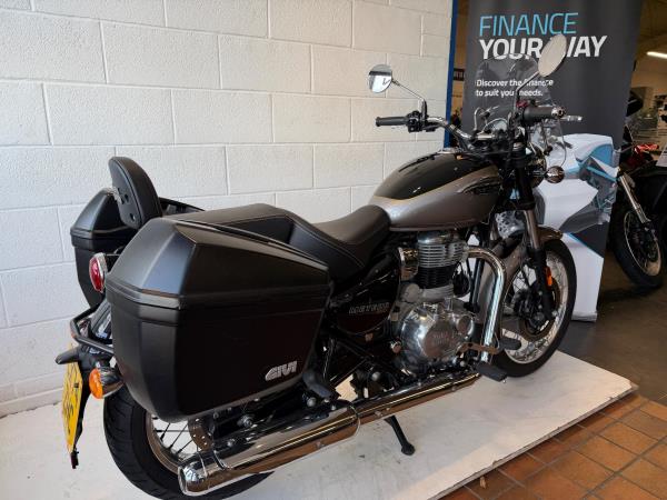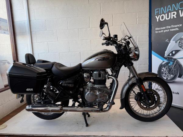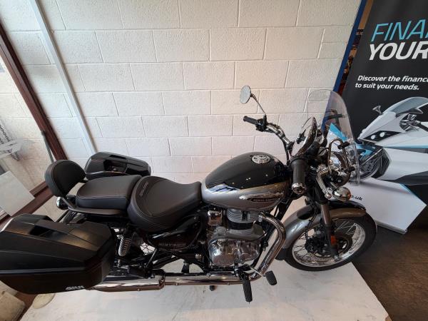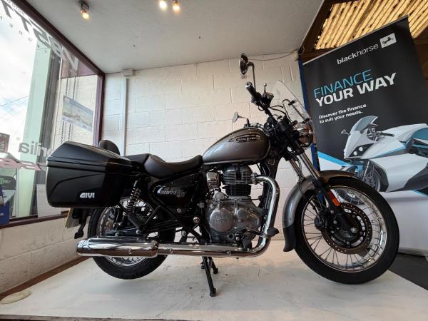 We currently have for sale a Royal Enfield Meteor 350. Registered November 2024 on a 74 plate. The bike has had two previous owners and done 2,173* miles. It comes fitted with Givi hard luggage, a screen and rear sissy bar along with span adjustable levers. Royal Enfield manufactures Warranty period is 3 years with unlimited mileage. (From Euro 5 models) , the remainder of the warranty from date of registration will come with this bike.. The bike will leave us with a full PDI check over, service and MOT if required. It has both keys and a handbook. If you would like more information or a detailed video, please contact Sales on 01745 815105 or WhatsApp 07496 452561. *mileage correct at time of advert PX considered.
