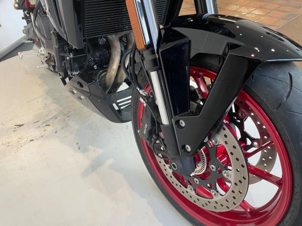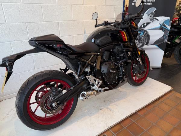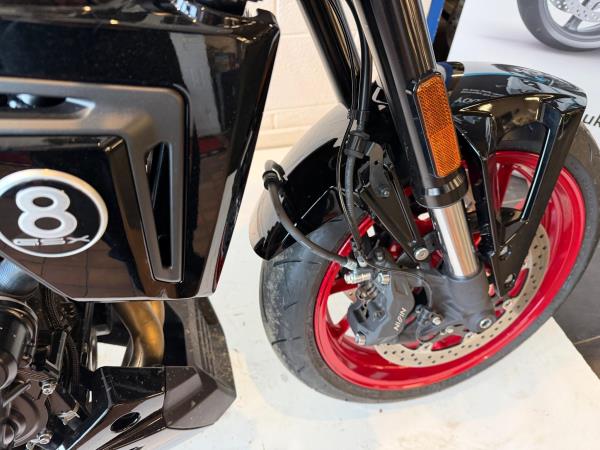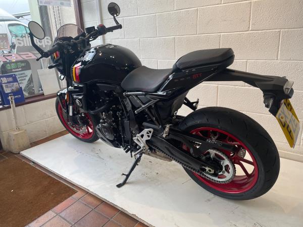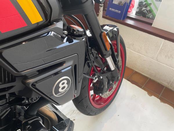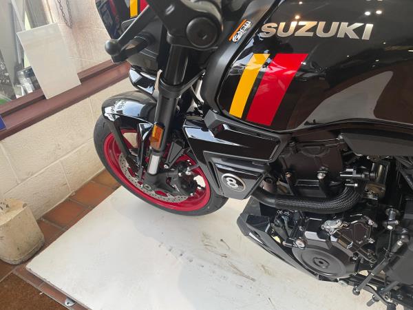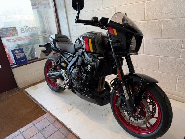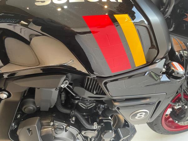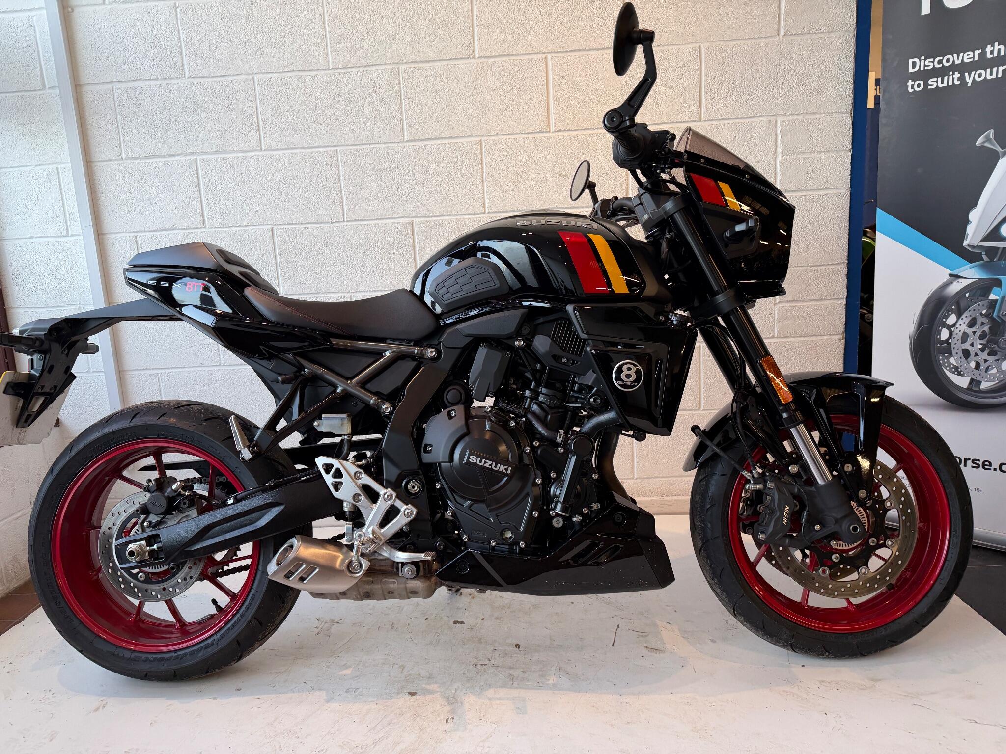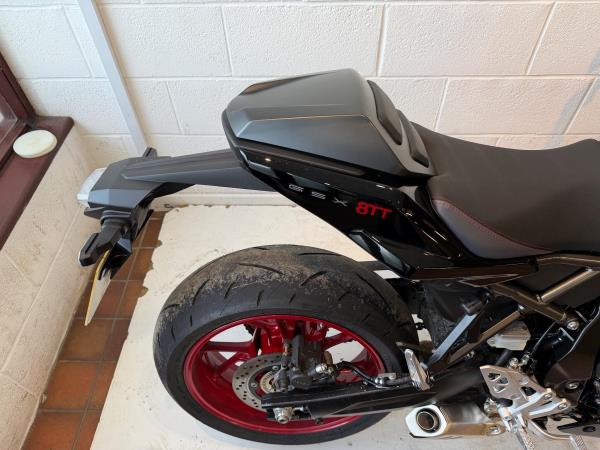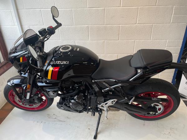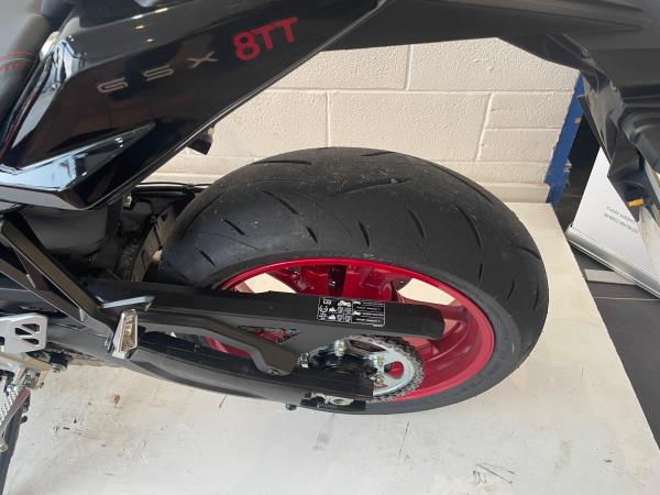 We have added rear seat cowl tank pad and knee grips along with adjustable levers to make this a real bargain. Influenced by road race machines of the 1970s and 1980s – such as the Yoshimura GS1000 AMA superbike – the 8TT wraps its award-winning engine in period race bike-inspired bodywork, finished with sporty detailing from the seat to the decals on the fairing and tank. The bike will leave us with full PDI ,service and MOT as required . If you would like more information or to discuss purchase and finance options please call our sales team on 01745 815105. * milage correct at time of advertisement. Suzuki offer a service activated warranty ,this bike will come with the remainder of the 3 year warranty which will be extended each year (terms and conditions apply) when serviced by us up to 10 years.
