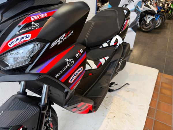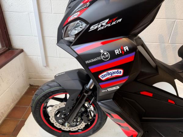 The Aprilia SR GT Sport’s kit-out is packed with exclusive details that emphasise its sporty soul. The black front mudguard, passenger handlebar and spoiler combine with the colour of the front shield, which extends right to the tail to create a truly dynamic effect. The matt-black central tunnel is enhanced with a red decal, while red wheel rims and the two-tone black seat with red stitching underline its decisive character. Lastly, a large ‘a’ for Aprilia is emblazoned along the sides of the shield, accompanied by red bars on the sides and an SR GT logo by the headlight. Aprilia offers a standard 24-month warranty on their scooters and motorcycles in the UK. They also provide an optional extended warranty, allowing owners to extend coverage for a third and/or fourth year. This extended warranty is available for scooters purchased from the Official Network on or after May 19, 2025.