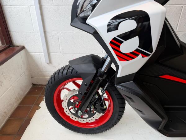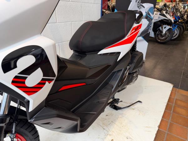 The Aprilia SR GT Sport’s kit-out is packed with exclusive details that emphasise its sporty soul. The black front mudguard, passenger handlebar and spoiler combine with the colour of the front shield, which extends right to the tail to create a truly dynamic effect. The matt-black central tunnel is enhanced with a red decal, while red wheel rims and the two-tone black seat with red stitching underline its decisive character. Lastly, a large ‘a’ for Aprilia is emblazoned along the sides of the shield, accompanied by red bars on the sides and an SR GT logo by the headlight. Aprilia offers a standard 24-month warranty on their scooters and motorcycles in the UK. They also provide an optional extended warranty, allowing owners to extend coverage for a third and/or fourth year. This extended warranty is available for scooters purchased from the Official Network on or after May 19, 2025.
