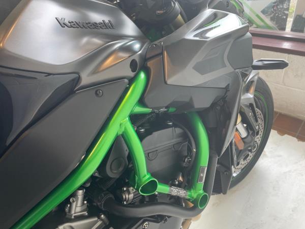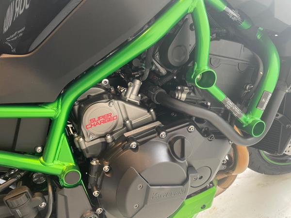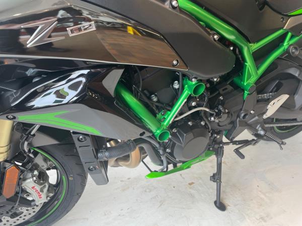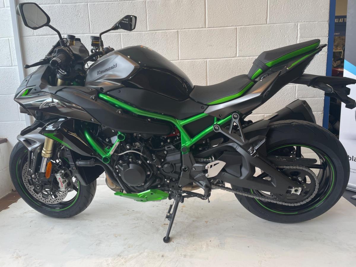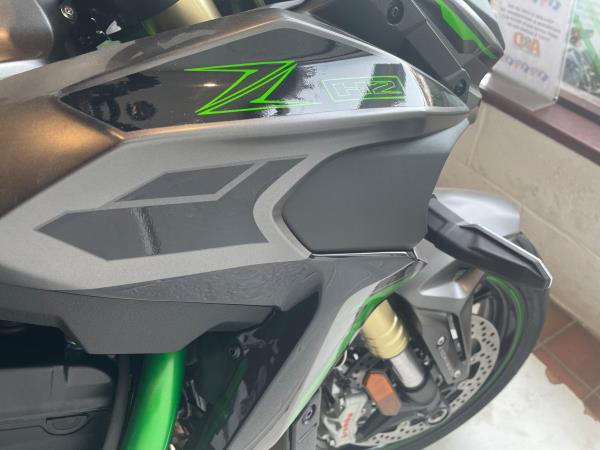 We currently have for sale a BRAND NEW and UNREGISTERED Kawasaki ZH2 SE. This bike will come with 48 months Kawasaki warranty, 12 months RAC cover and 12 months Kawasaki Riders Club. The Z H2 SE is boosted by unique Kawasaki Supercharger technology featuring new dedicated features delivering unmatched performance : New Showa electronic suspension with Skyhook technology, Brembo brake calipers from the H2 series, plus new colour and graphics, combine to boost your emotions beyond limits. The bike will leave us with a full PDI, tax and first registration. If you would like more information or a detailed video, please contact Sales on 01745 815105 or 07496 452561. Finance options are available.