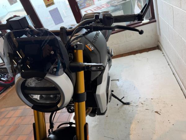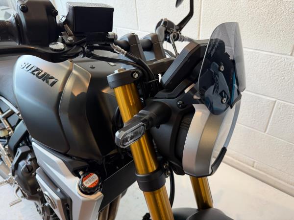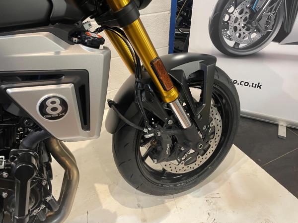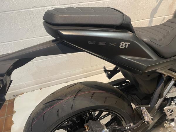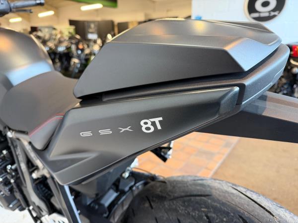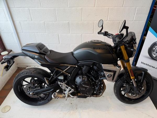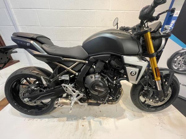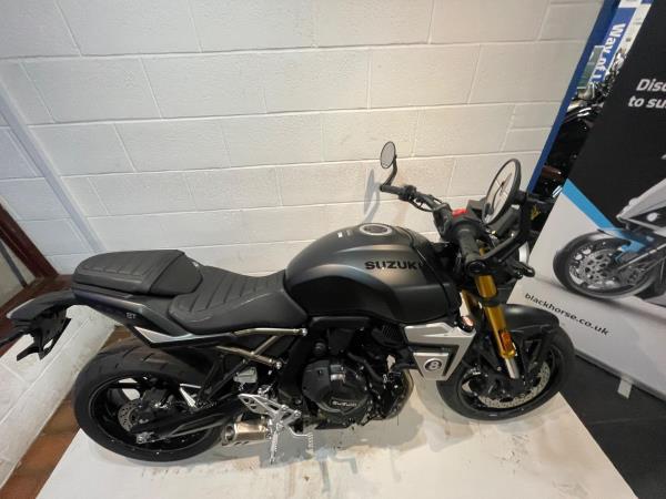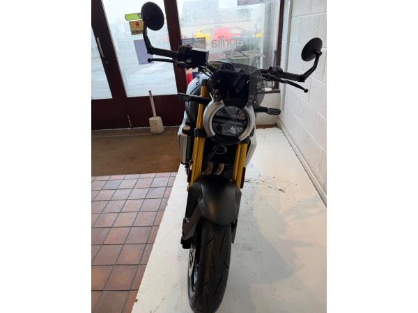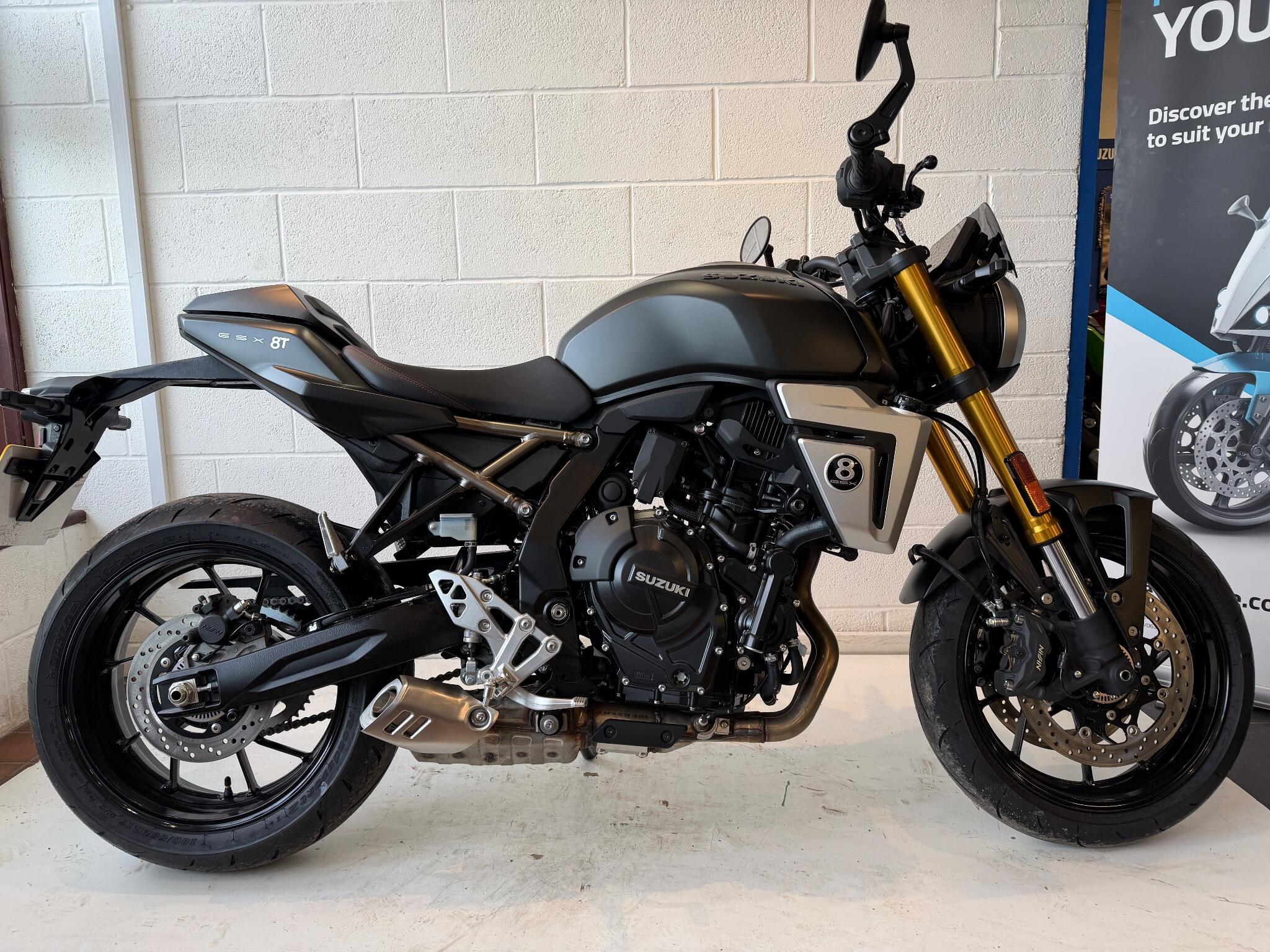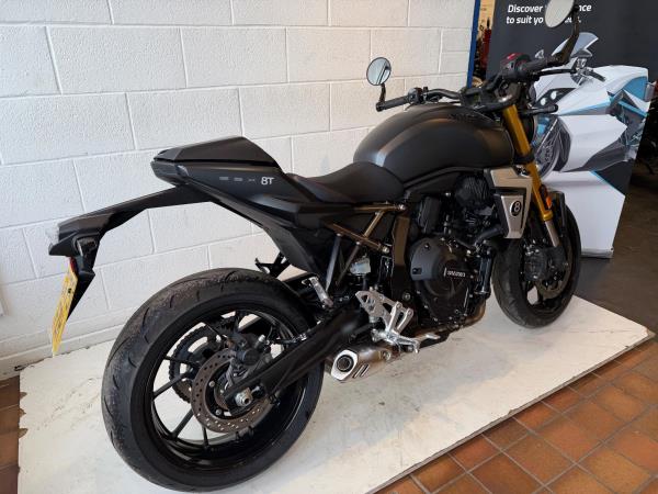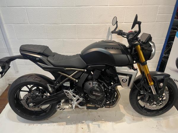 We have added extras of a seat hump and instrument visor ,this bike has also been pre registered and is showing PDI miles. Drawn by designers in Italy and further sculpted in Japan, the 8T evokes the charm of classic bikes from the 70s and 80s, including the iconic Suzuki T500. Suzuki offer a service activated warranty ,this bike will come with the remainder of the 3 year warranty which will be extended each year (terms and conditions apply) when serviced by us up to 10 years.