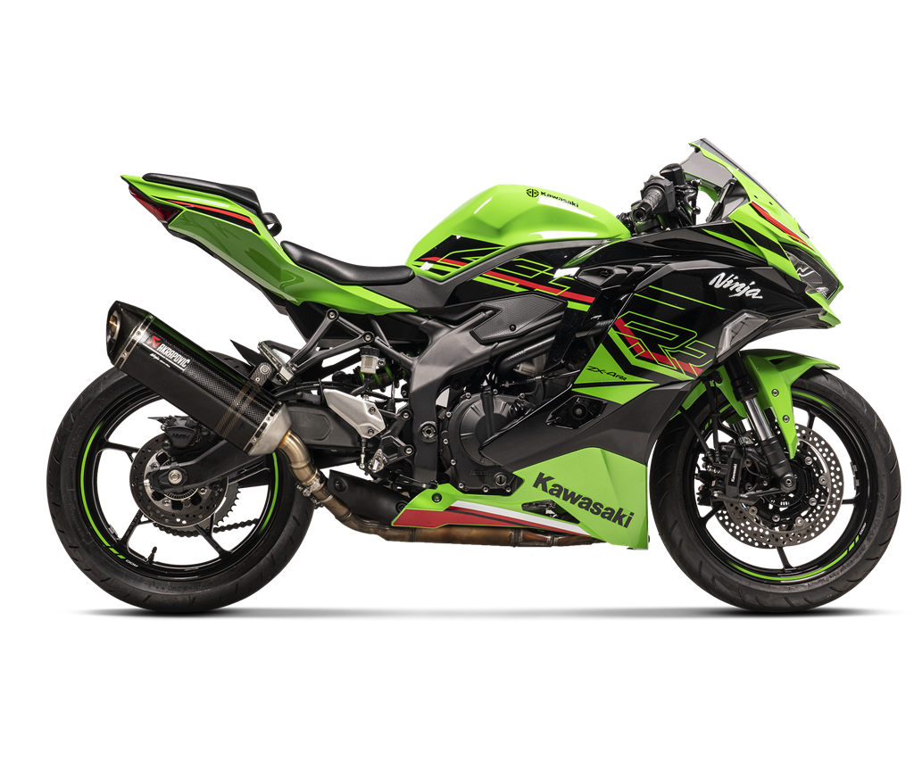 Give your Kawasaki bike a more sporty look and sound with this Akrapovic slip-on system.