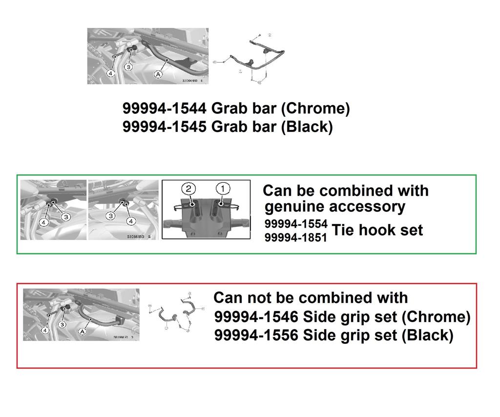 The Grab bars can not be installed in conjunction with the Side grips for Z650RS