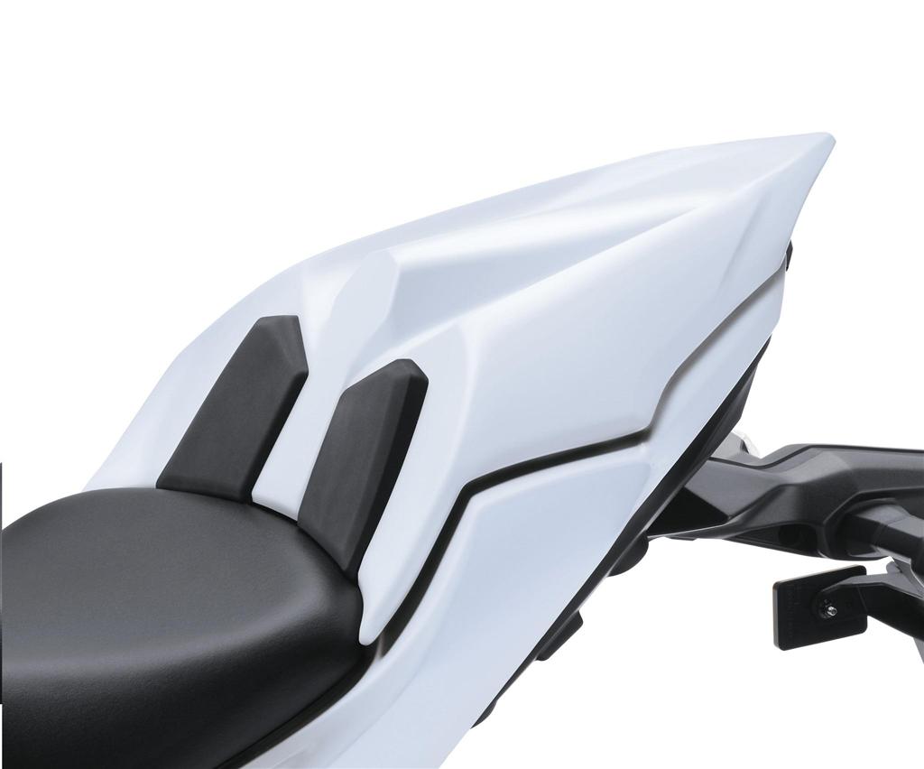Colour matched seat cover to enhance the bike's racy lines. With 2 rubber support pads 'Bump stops'. Click in click out convenience provides speedy conversion from solo to dual seat operation.